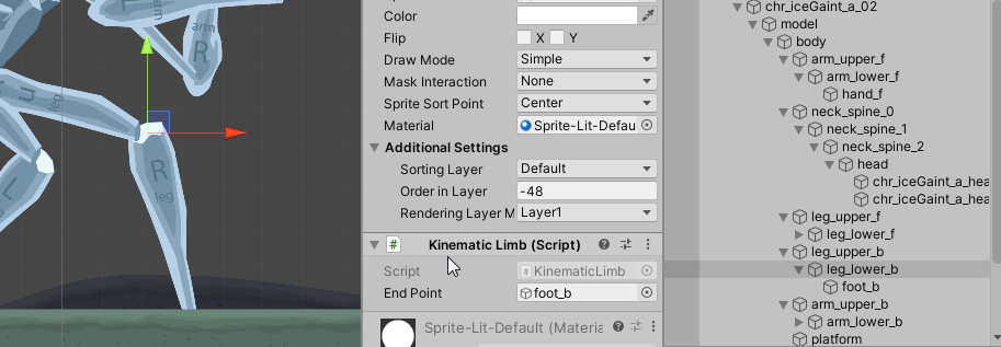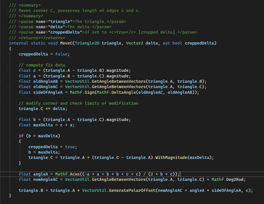 Aside from coordinate space conversion – and all these fine-grained architectonical decisions (limb types, extra actions like rotating and bending) – there was one challenging part here; at least for me, since I am not good at mathematical issues: Achieving the IK movement action.