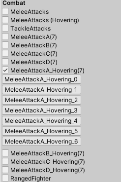 - Initialize layers with wanted animation states, based on existing animation clips – one click per state, e.g. “MeleeAttackA”
