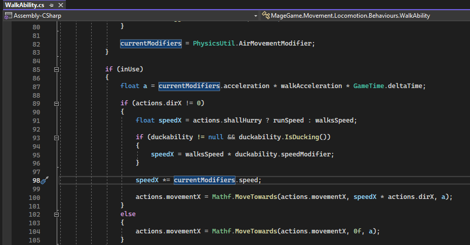 PhysicsUtil to retrieve the desired movement modifier.