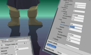 To cope with that issue, I came up with a new behaviour that would distort the transforms of an object as soon as something happens physcially in the environment, e.g. a magical explosion or a character passing by. That made the scenery overall more realistic – and fun!