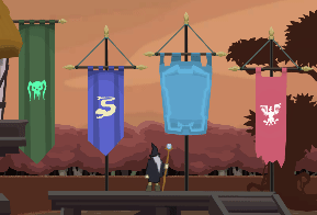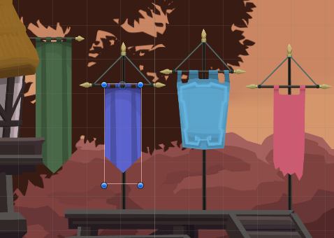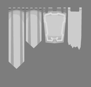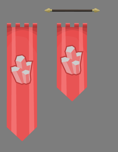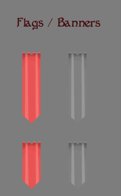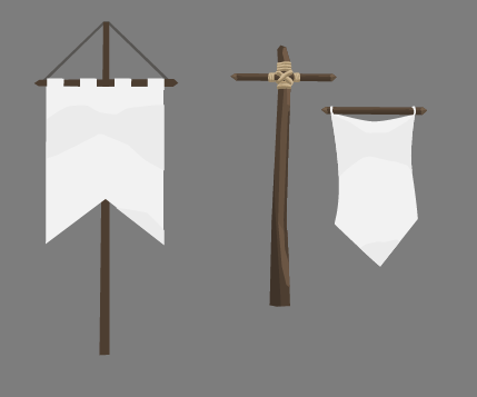 Since the flag fabric color may vary a lot – depending on the faction that owns the flag or banner, its texture is monochrome and held in lighter gray tones. The actually wanted color will be set in the Unity editor through the properties of the SpriteRenderer. In the graphical tool however, it is designed for with a color in mind and later the colors are changed. The disadvantage of this strategy is: only one color can be used in the banner. Plus: different colors may require another contrast, since the perceived lightness differs among colors. With that said, our approach may be artistically limiting, but overall sufficient for the moment.