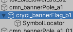 The total prefab we create consists of a game object for the pole; within it there is a game object for the banner and within the latter there is a game object that acts as locator for the emblem (or “symbol”) – that one just carries the information at which position the emblem has to be added, and with which scale.